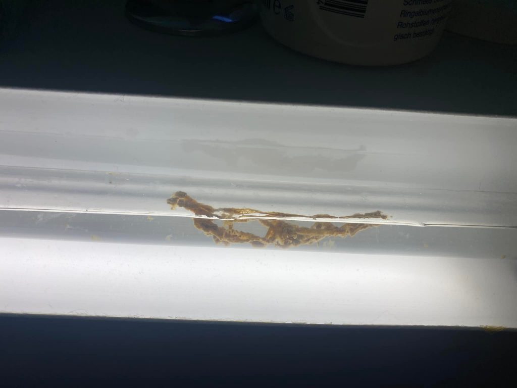 Formarea pe peretele intestinului a unei formațiuni numită placă mucoidă.